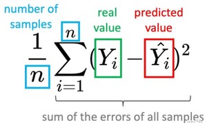 MSE 计算模型的预测 Ŷ 与真实标签 Y 的接近程度。公式表示为: