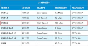 3、多种传输模式:USB 2.0 支持低速(1.5 Mbps)、全速(12 Mbps)和高速(480 Mbps)三种传输模式。