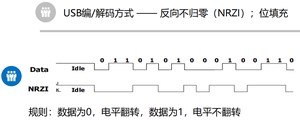1、USB 1.1 和 USB 2.0 使用 NRZI 编码来传输数据。