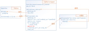 - 然后需要在Cython的中调用Python的回调函数(我们把它叫做),这步会比较难实现,因为C环境调用时无法将的信息传入