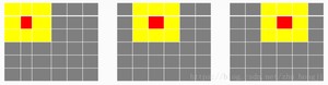 假设有6x6的图像像素点矩阵。卷积过程:6x6上面是个3x3的窗口,从左向右,从上向下移动,黄色的每个像个像素点值之和取平均值赋给中心红色像素作为它卷积处理之后新的像素值。每次移动一个像素格。
