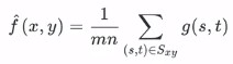 线性滤波处理的输出像素值g(i,j)也就是上面的红心的值(锚点),是输入图像f(i+k,j+l)的加权和。h(k,l)是核,也是窗口大小;