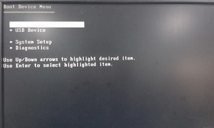 插入U盘,重启你的PC按F12(我的PC机是DEll电脑,其他型号PC可能按键不同,自行百度)进入选择启动项设置界面,选择USB Device,按ENTER进入。