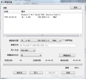 接着选择菜单栏“启动”-->“写入硬盘映像”,先对U盘格式化,接着写入,然后就是静静等待,,录入成功 U盘启动盘便制作OK!然后给启动盘标签起个“好听”(容易识别,eg: centos)的由字符串组成的名字,不要问为什么,后面你就知道了。