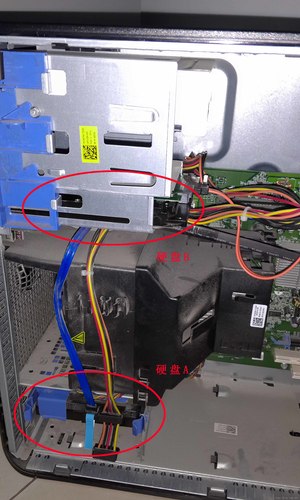 先搭硬件呗,让我先看看这俩硬盘是啥型号的,ata wdc wd5000aakx-7(西部数据)是我的主机硬盘,ata st3500418as(希捷)是师兄送的硬盘,为后续叙述方便,将西部硬盘赋值为硬盘A,希捷硬盘赋值为硬盘B(程序编多了就喜欢这样说话哈哈)。具体型号无需多下功夫了解,只要知道它们啥接口以及你的PC支持的接口就可以了, 我的硬盘A,硬盘B都是SATA接口,(具体硬盘接口SATA与IDE区别参见http://product.pconline.com.cn/itbk/diy/harddisk/1112/2620914.html)我的PC正好支持两个SATA接口,不幸的是当时我的PC的两个SATA接口一个接硬盘A,另一个在光驱上接着,已经没有多余的接口了,为了我的双硬盘双系统梦想,我毫不犹豫的卸载了光驱,反正流氓VRV早就将光驱驱动禁用了,光留个空壳也没用了,所以我就SATA_0接口接了硬盘A,SATA_1接口接了硬盘B,默认SATA_0为第一启动盘,也可以进BIOS里去设置哪个为第一启动盘。这里默认就好。