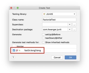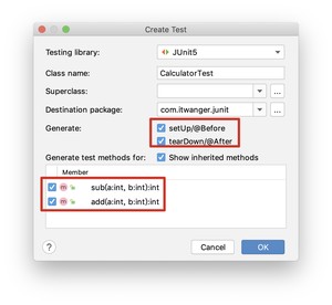 勾选上要编写测试用例的方法 ,然后点击「OK」。