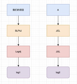 假设我们正在开发一套系统,打算用 SLF4J 作为门面,Log4j 作为日志系统,我们在项目中使用了 A 框架,而 A 框架的门面是 JCL,日志系统是 JUL,那就相等于要维护两套日志系统,对吧?