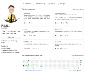 一股秋风瑟瑟的清冷感扑面而来,有没有?可能巨佬不屑于维护他的 GitHub 主页吧?我的 GitHub 主页够凄惨了,没想到巨佬比我还惨,终于可以吹牛逼地说,“我,沉默王二,GitHub 主页比 SLF4J、Log4J 和 Logback 的作者 Ceki Gulcu 绿多了。。。。。。”