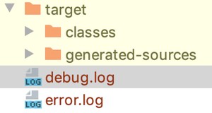 运行后,可以在 target 目录下看到两个文件:debug.log 和 errror.log。
