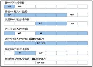 FIFO 的设计原则是任何时候都不能向满FIFO中写入数据(写溢出),任何时候都不能从空FIFO中读取数据(读溢出)。