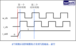 - 读时钟:读操作所遵循的时钟,在每个时钟沿来临时读数据。(同步FIFO 读写只有一个时钟)