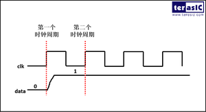第一个时钟周期采集到的是0, 第二个周期电平已经稳定到1。