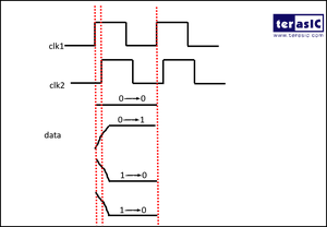 这里选择的是读写频率相同,但读是在时钟下降沿, 写在时钟的上升沿。