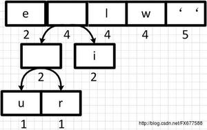 有了上面的编码表之后,”we will we will r u”这句重新进行编码就可以得到很大的压缩,编码表示为:01 110 10 01 1111 00 00 10 01 110 10 01 1111 00 00 10 11101 10 11100。这样最终我们只需50位内存,比原ASCII码表示节约了2/3空间,效果还是很理想的。当然现实中不是简单这样表示的,还需要考虑很多问题。