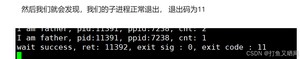 而我们的子进程上面是可以看到是正常退出——信号位0; 并且退出码为11, 二进制就是1011, 然后合起来就是0000 1011 0000 0000——这个二进制转化为十进制就是2816.