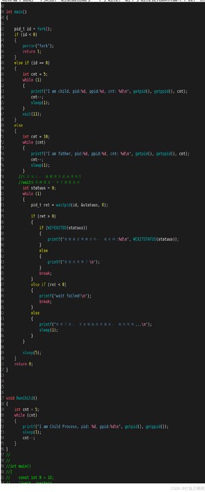 下面是实验(使用wait, waitpid和wait一样, 不用着急, waitpid后续会讲解)