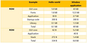 Flash和RAM的使用大小取决于用户所使用的STemWin的功能以及编译器的效率。因此不可能指定精确的值,但是以下值适用于典型的系统。