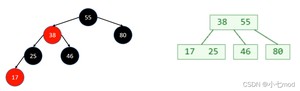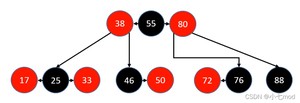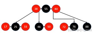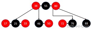 - 在所有的B树节点中,永远是黑色节点是父节点,红色节点是子节点。黑色节点在中间,红色节点在两边。