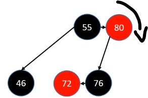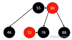 但是现在我们发现,80是红色节点,它的子节点72还是红色节点,这样明显不符合红黑树的性质,还需要进一步修复。
