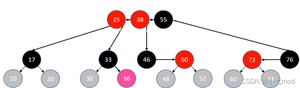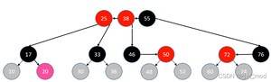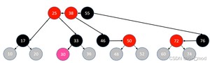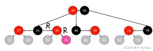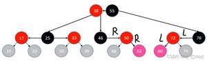 - RR情况应该原祖父节点46左旋,将插入节点的原父节点50旋转到中间的位置。