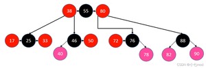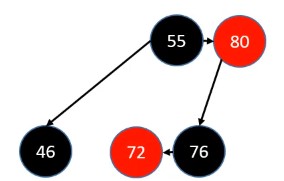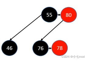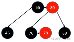 将兄弟节点76染成红色,父节点80染成黑色即可完成修复