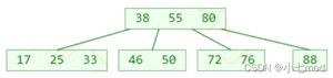 这个结构很明显,就是一棵四阶B树(一个节点最多放三个数据),如果画成如下的样子大家应该就能看的更清晰了。