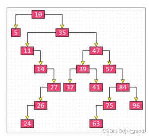 10, 35, 47, 11, 5, 57, 39, 14, 27, 26, 84, 75, 63, 41, 37, 24, 96组成一棵树