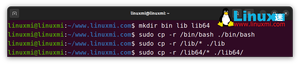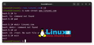 3、最后,当程序和它的依赖项复制完成后,你可以使用 sudo 前缀以提升的权限运行 chroot 命令,在所选择的目录中生成 chroot 环境。默认情况下,它将生成一个Bash shell。下面是要输入的命令: