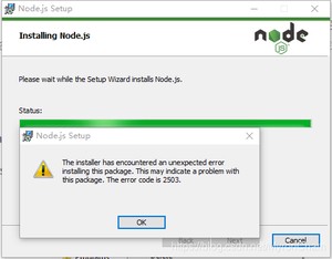 在安装 node-v12.16.1-x64 -win64.msi 软件时报2502/2503错误,导致安装失败。