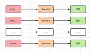 例如,当有多个任务同时需要处理的时候,一个任务对应一个线程来执行,以此来提升任务的执行效率,模型图如下: