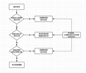 - 4.当任务队列已满,会再次检查线程池中的线程数是否达到最大值,如果没有,就会创建新的线程来执行任务