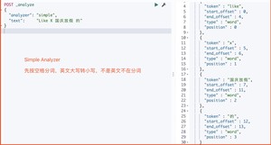 - Simple Analyzer - 按照非字母切分(符号被过滤), 小写处理