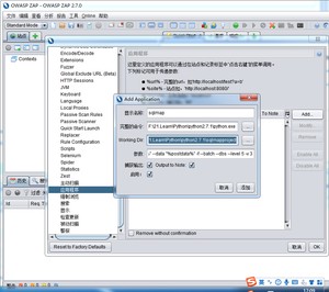 分析方法:安装上述步骤配置zap 工具-》选项-》应用程序,选中cgi请求,右键Run 应用程序-》sqlmap,就会在已经打开的sqlmap窗口进行分析。