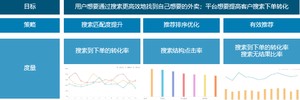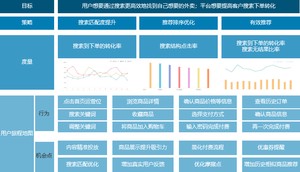 那么基于以上策略,可以定出以下业务衡量指标:一是搜索到详情页的转化率;二是详情页到下单的转化率。