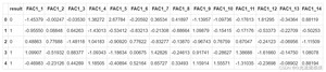 数据解释:result是胜负结果;FAC1_1等是通过主成分分析后得到的技战术指标