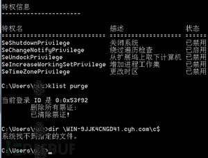 在验证之前我们要做好相应的准备工作;检查是否删除了所有的票据,能否打开域控的C盘