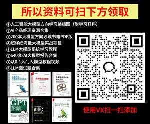 针对所有自学遇到困难的同学们,我帮大家系统梳理大模型学习脉络,将这份 分享出来:包括等, 😝有需要的小伙伴,可以 扫描下方二维码领取🆓↓↓↓