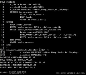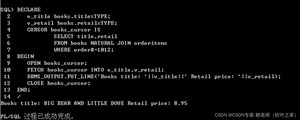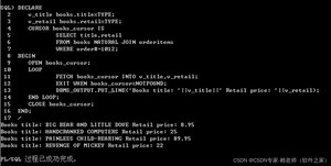 块中嵌一个游标,从游标中提取行时,提取它们的顺序与最初将它们放在游标中的顺序相同。要想确保游标中的第一行包含零售价最高的图书,可以在声明游标时向定义游标的