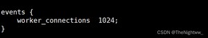 下图例子就表示每个 work process 支持的最大连接数为 1024. 这部分的配置对 Nginx 的性能影响较大,在实际中应该灵活配置。