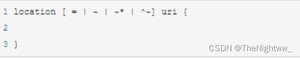 4、^~:用于不含正则表达式的 uri 前,要求 Nginx 服务器找到标识 uri 和请求字符串匹配度最高的 location 后,立即使用此 location 处理请求,而不再使用 location 块中的正则 uri 和请求字符串做匹配。