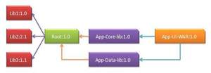 - 公共的依赖可以使用 pom 父的概念被统一放在一起。App-Data-lib 和 App-Core-lib 项目的依赖在 Root 项目里列举了出来(参考 Root 的包类型,它是一个 POM).