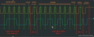 - SDA先拉低电平,SCL接着拉低电平表示开始传输数据。