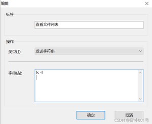 标签填写提示内容,类型选择发送字符串,字串填写命令,记住最后添加一个回车,否则命令只能输出到屏幕而不会自动执行