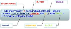 Monkey.jar程序是由一个名为“monkey”的Shell脚本来启动执行,shell脚本在Android文件系统中的存放路径是:/system/bin/monkey;这样就可以通过在shell窗口中执行: adb shell monkey {+命令参数}来进行Monkey测试了。