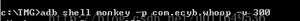 示例:adb shell monkey -p fishjoy.control.menu --throttle 3000 100