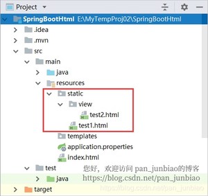 将HTML页面存放在 resources(资源目录)下的 static 目录中。
