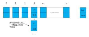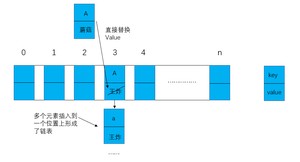 大家都知道数组的长度是有限的,在有限的长度里面使用哈希函数计算index的值时,很有可能插入的k值不同,但所产生的hash是相同的(也叫做哈希碰撞),这也就是哈希函数存在一定的概率性。就像上面的K值为A的元素,如果再次插入一个K值为a的元素,很有可能所产生的index值也为3,也就是即hash("a")=3;那这就形成了链表,这种解决哈希碰撞的方法也叫做拉链法。