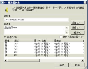 上边以139端口为例,点击确定后可以继续添加其他端口,都添加完后效果如右上图,点击确定后如下图,然后我们再添加筛选器操作。