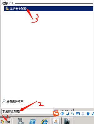 打开开始菜单,在搜索框中输入本地安全策略