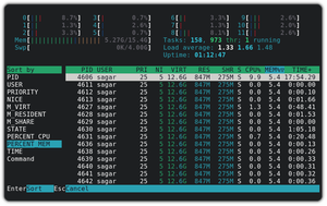 由于htop主要用于检查系统资源,我们来看看如何根据资源消耗对进程进行排序。